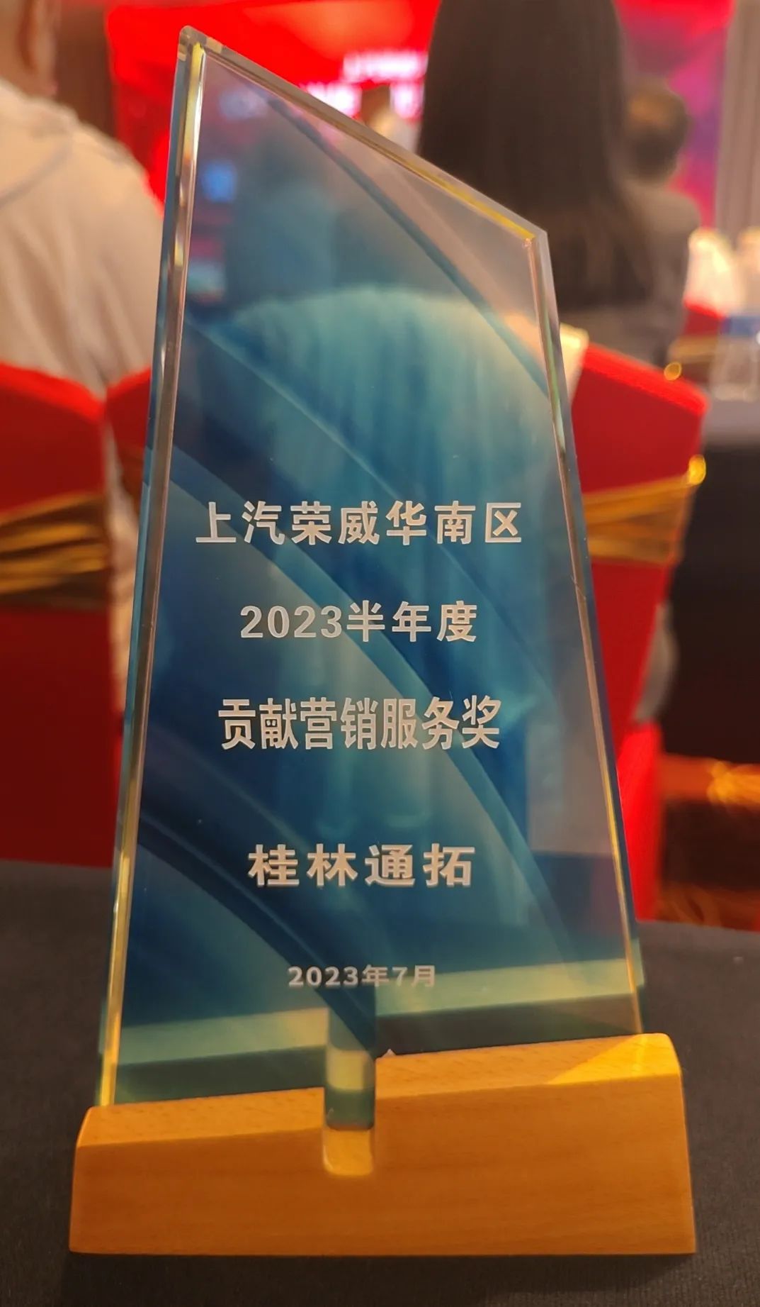 桂林通拓公司榮獲上汽榮威華南區(qū)2023半年度貢獻(xiàn)營(yíng)銷服務(wù)獎(jiǎng)
