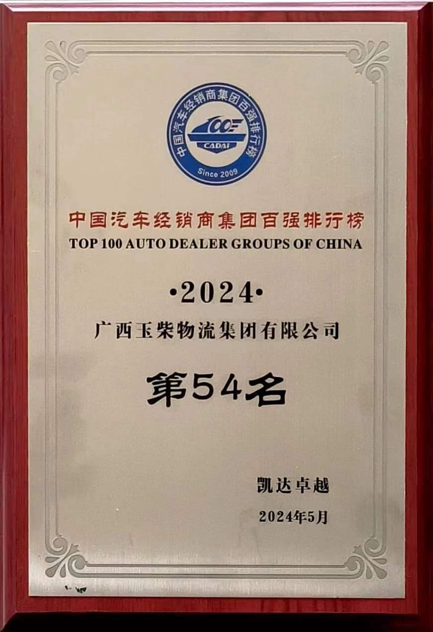 玉柴物流集團(tuán)榮獲2024中國汽車經(jīng)銷商集團(tuán)百強(qiáng)稱號