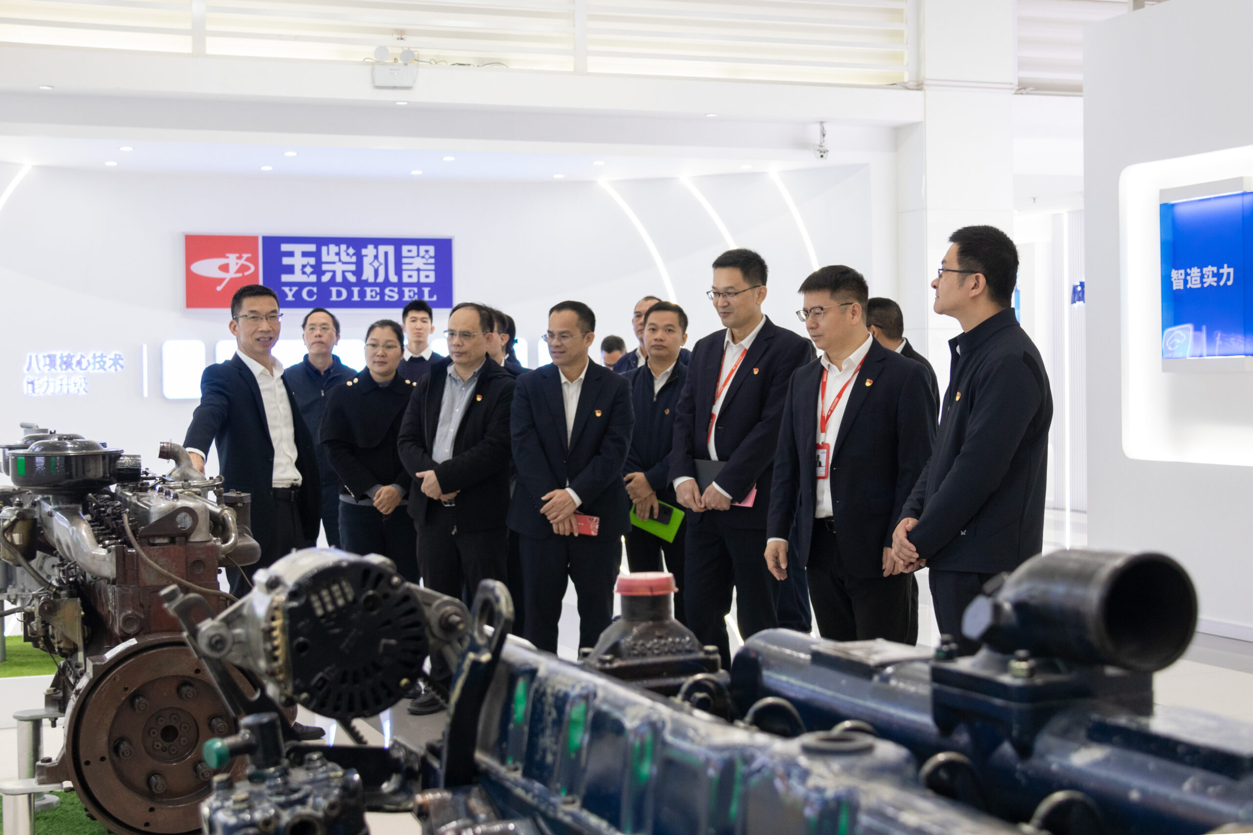 會前,莫政融一行參觀了玉柴科技展廳,了解玉柴集團的技術(shù)研發(fā)脈絡、關(guān)鍵技術(shù)突破成果以及在國內(nèi)外市場的布局與應用成果。